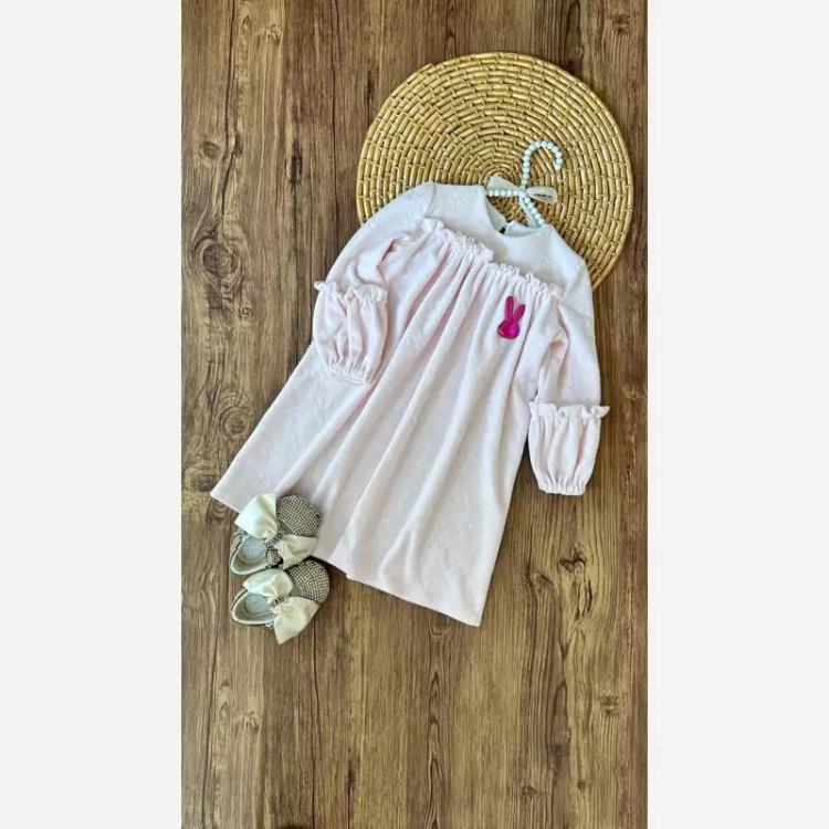 جنس :مخمل حوله ای با گلدوزی پاپیون🎀 مناسب فصل تک رنگ صورتی روشن🎨 مناسب سن 3تا 10 سال 🌱 توضیح:پهنای کار در همه ی سایز ها حدودا 6 سانت به علت چین بیشتر است. در قسمت کارو و آرنج لباس چین های روکار کار شده که زیبایی این مدل رو دو چندان کرده. مچ آستین کش خورده سایز 40: قد 62 قد آستین34 سایز 45: قد 65 قد آستین37 سایز 50: قد 68 قد آستین 39 سایز 55: قد 72 قد آستین42