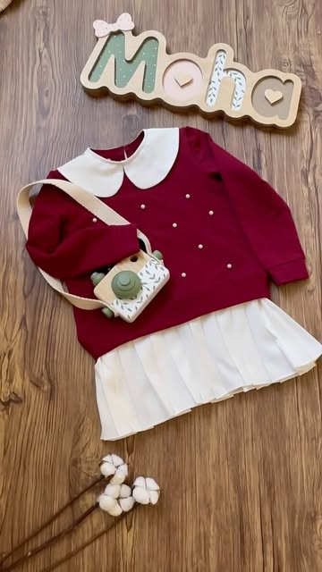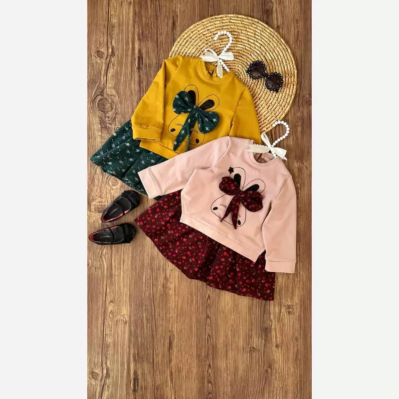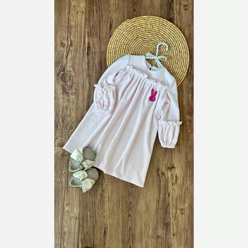 پیراهن بچگانه مخمل حوله ای طرح پاپیون