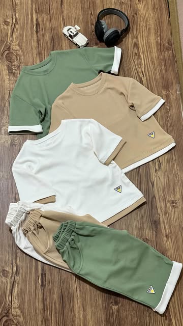 بلوز و شلوارک یقه انگلیسی پسرانه جنس بیسکویتی یقه انگلیسی